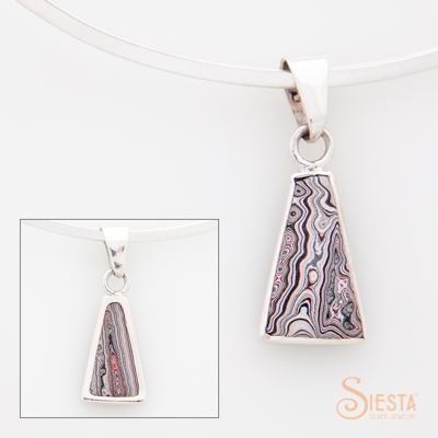 Fordite/Motor Agate/Detroit Agate Small Pendant in Sterling Silver