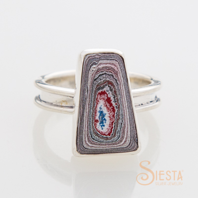 Like agate, Corvette Paint is cut and polished to reveal the swirling patterns of colors inside. Unlike agate, Corvette Paint comes not from the ground but from the retired paint shops of the automotive industry. In the old style of painting cars there was a great deal of overspray. This paint built up layer by layer and was baked at high temps between coats. As the story goes, paint shop workers would sometimes knock chunks of the paint buildup loose and take them home as souvenirs. The colorful buildup was beautiful in its raw form and turned out to be breathtaking once cut and polished, perfect for use in jewelry. No one knows how much Corvette Paint was saved. Modern processes are no longer creating this amazing byproduct. All we know for sure is it looks great in our Siesta earrings, pendants, bracelets, cuff links and rings!