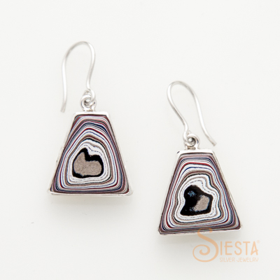 Like agate, Corvette Paint is cut and polished to reveal the swirling patterns of colors inside. Unlike agate, Corvette Paint comes not from the ground but from the retired paint shops of the automotive industry. In the old style of painting cars there was a great deal of overspray. This paint built up layer by layer and was baked at high temps between coats. As the story goes, paint shop workers would sometimes knock chunks of the paint buildup loose and take them home as souvenirs. The colorful buildup was beautiful in its raw form and turned out to be breathtaking once cut and polished, perfect for use in jewelry. No one knows how much Corvette Paint was saved. Modern processes are no longer creating this amazing byproduct. All we know for sure is it looks great in our Siesta earrings, pendants, bracelets, cuff links and rings!