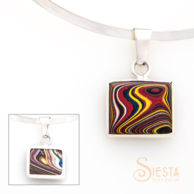 Like agate, Corvette Paint is cut and polished to reveal the swirling patterns of colors inside. Unlike agate, Corvette Paint comes not from the ground but from the retired paint shops of the automotive industry. In the old style of painting cars there was a great deal of overspray. This paint built up layer by layer and was baked at high temps between coats. As the story goes, paint shop workers would sometimes knock chunks of the paint buildup loose and take them home as souvenirs. The colorful buildup was beautiful in its raw form and turned out to be breathtaking once cut and polished, perfect for use in jewelry. No one knows how much Corvette Paint was saved. Modern processes are no longer creating this amazing byproduct. All we know for sure is it looks great in our Siesta earrings, pendants, bracelets, cuff links and rings!