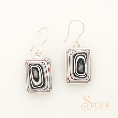 Every piece of Fordite, also known as Detroit Agate, is a unique object of beauty. Like agate Fordite is cut and polished to reveal the swirling patterns of colors inside. Unlike agate, Fordite comes not from the ground but from the retired paint shops of the automotive industry. In the old style of painting cars there was a great deal of overspray. This paint built up layer by layer and was baked at high temps between coats. As the story goes, paint shop workers would sometimes knock chunks of the paint buildup loose and take them home as souvenirs. The colorful buildup was beautiful in its raw form and turned out to be breathtaking once cut and polished, perfect for use in jewelry. No one knows how much Fordite was saved. Modern processes are no longer creating this amazing byproduct. All we know for sure is it looks great in our Siesta earrings, pendants, bracelets and rings!
