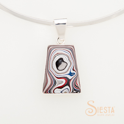 Every piece of Fordite, also known as Detroit Agate, is a unique object of beauty. Like agate Fordite is cut and polished to reveal the swirling patterns of colors inside. Unlike agate, Fordite comes not from the ground but from the retired paint shops of the automotive industry. In the old style of painting cars there was a great deal of overspray. This paint built up layer by layer and was baked at high temps between coats. As the story goes, paint shop workers would sometimes knock chunks of the paint buildup loose and take them home as souvenirs. The colorful buildup was beautiful in its raw form and turned out to be breathtaking once cut and polished, perfect for use in jewelry. No one knows how much Fordite was saved. Modern processes are no longer creating this amazing byproduct. All we know for sure is it looks great in our Siesta earrings, pendants, bracelets, cuff links and rings!