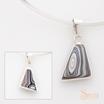 Fordite/Detroit Agate Small Pendant in Sterling Silver