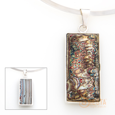 Fordite/Motor Agate/Detroit Agate Large Pendant in Sterling Silver